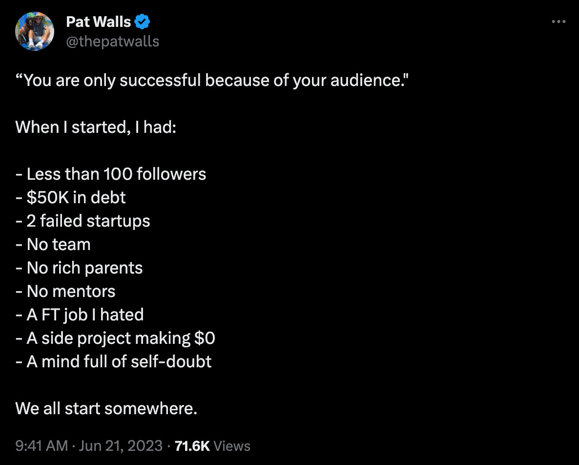 I know Pat Walls is the founder of a tech company, but his advice is very solid. See the tweet here.