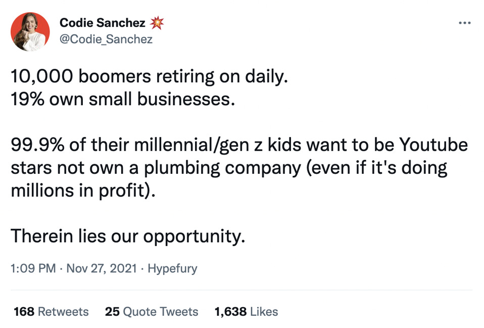 You see many of these aging adults own businesses that are doing billions of dollars of revenue each year. According to Forbes, the Baby Boomer generation owns 2.3 million small businesses in the United States.